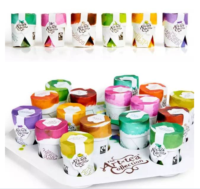 人靠衣裝,佛靠金裝,茶葉也要靠包裝,小編會這樣說并不是憑空捏造的,而是真的有案例。荷蘭的一家餐廳由于一般的茶品顯得太普通,很難使顧客提起興致,餐館為了革新餐廳理念,請了團隊為他們重新設計了茶飲品的包裝。不僅如此,還把茶葉一份份地分到每個獨立的一次性茶盒里。以水彩畫為創作主題,每個盒子配一個色調,水彩筆觸大塊地鋪上去,濃淡層次讓總體感覺非常清新和舒服。盒身事實上是一張紙疊成,把與盒蓋連接部分的標簽撕開以后,盒子會散開成一張紙,茶葉點綴在上面就像茶葉放在了水彩畫家的調色盤里一樣,這樣的設計讓客人在用餐時感到心情愉悅,也讓餐館凝集了藝術的氣息。讓客戶有了這樣愉快的體驗,后來的餐廳的生意火爆程度可想而知。