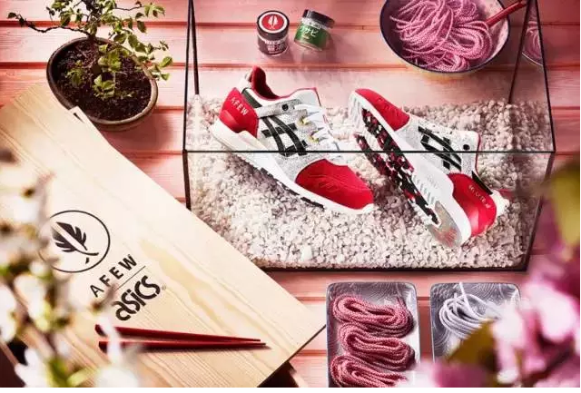 內置的白色防塵袋除了聯名鞋款外,還裝有一雙紅色竹筷及印有設計靈感的小冊子,額外附贈的兩條鞋帶分別裝在芥末瓶與醬油瓶中,拿起筷子可以開吃了。