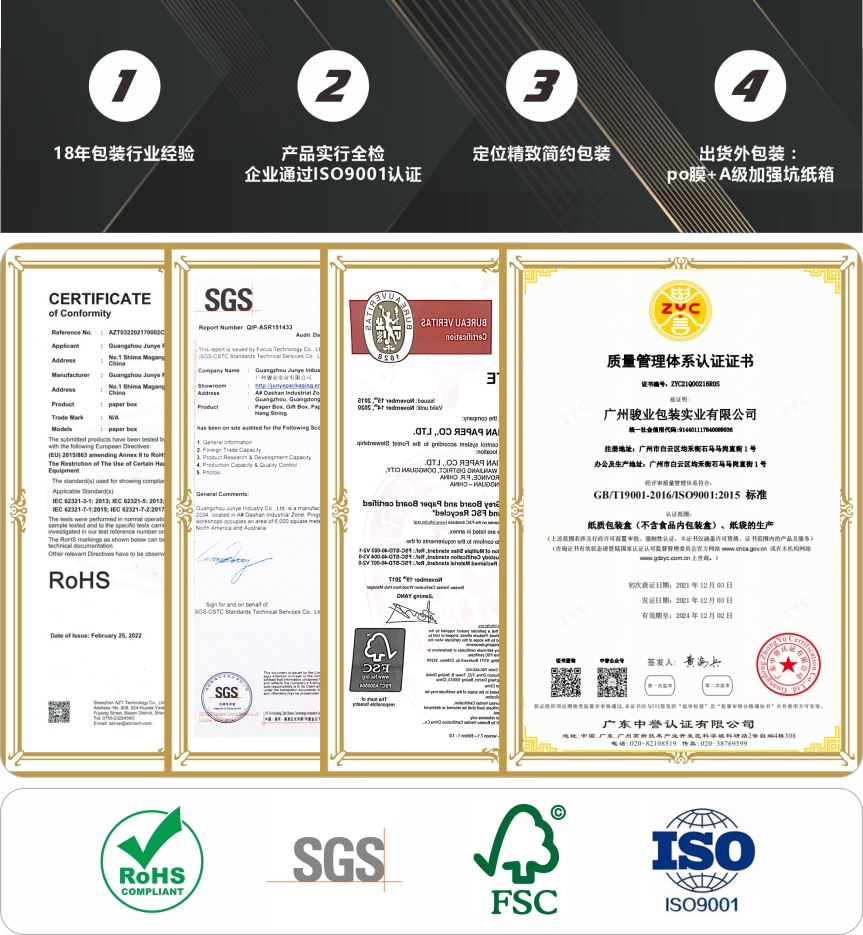 駿業包裝將繼續發展全球貿易,關注客戶體驗,為客戶提供高質量和最新的包裝,并幫助客戶的產品銷售得更好。歡迎聯系我們。