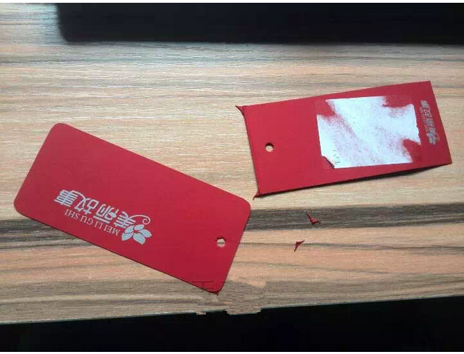 將吊牌上的繩子割開然后攤開吊牌,有些吊牌上面會貼有價格或其他的帖紙,即使將貼紙撕下來了也會留有一個印,那這邊的吊牌就不好利用了,果斷放棄,咱留一半就好。