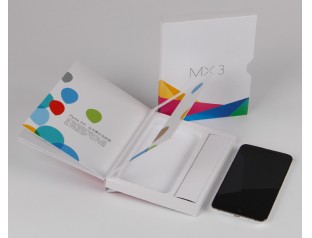 此款手機包裝盒制作采用400g單銅紙,四色印刷,過啞膠。盒型也是采用書本式的翻蓋盒設計。手機包裝紙盒是文藝清新款的書本式包裝盒設計,打開包裝盒,是關于手機、關于系統的介紹,而手機也鑲嵌在書中。廣州駿業包裝廠定制的創意手機包裝盒,工藝豐富、材質精美,讓產品彰顯高端提升檔次。