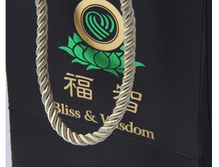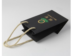 這款首飾紙袋使用原漿紙為主要材料,盒子表面logo使用精美的燙金工藝,凸顯品牌質感。紙袋表面圖案使用CMYK四色彩印工藝,圖案清晰顏色妍麗;拎手處打孔打結處理,更加牢固。廣州駿業包裝作為一家專業的手提袋廠家,自主設計,研發,生產,銷售高檔包裝,歡迎您前來定制。