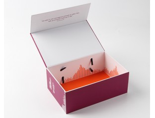 這個盒子與眾不同的是有拎手,盒子內部也用印刷精美的紙裱起來,對產品來說,這款盒子從顏色的選擇到設計都非常的高檔時尚。
