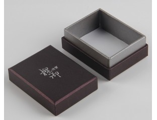 此款珠寶盒包裝采用特種紙裱1000g灰板,商標燙銀珠寶盒設計天地蓋帶圍邊的盒型,圍邊采用深灰色特種紙裱灰板。廣州駿業包裝廠定制的首飾盒采用優良材質,流程機械化與人工的結合,量身定制中高端包裝盒。