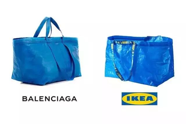 面對如此紅的購物袋一些奢侈品大牌設計師也耐不住寂寞了,巴黎世家出了一款相似度90%的手提袋,掀起一波改裝潮。所謂高手在民間,網民們的腦洞更是清奇,于是將宜家購物袋DIY成各種你想得到想不到的產品,例如:辣眼睛的丁字褲、時尚的吊帶背心、迷之槽點的口罩等等,呃,我的眼睛有點睜不開了~