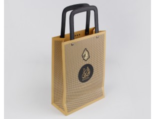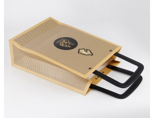 此款紙袋制作采用特種紙,商標燙金,加上PU皮手提繩。手提袋設計的手提處選用了黑色PU皮,高檔紙袋手提繩打雞眼,提高了手提紙袋的承受力。廣州駿業(yè)紙袋廠家,專業(yè)16年印刷包裝行業(yè),免費設計,量身定制,想了解更多手提紙袋,歡迎致電:020-66677799
