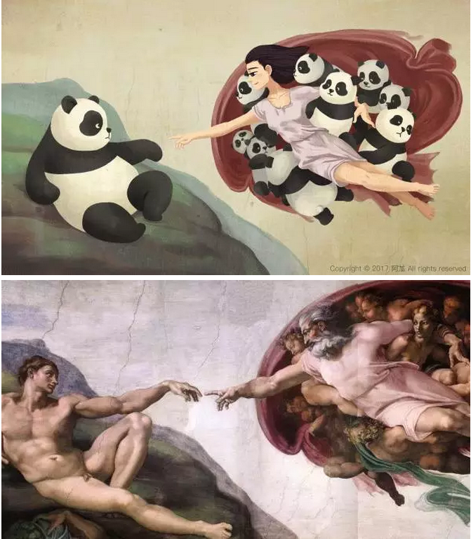 隨著網絡技術的不斷發展、信息傳播的手段越來越多,以前只能去動物園也不一定看得到的國寶通過個大網絡平臺與大家見面,人們可以通過直播看到國寶的日常生活狀態,也因此被它們呆萌的性格給圈粉。當然,國寶的魅力不僅限于中國境內,那些外國友人也被這些圓滾滾的國寶給迷得神魂顛倒,這不,最近,有個名叫阿尨along的插畫師火了。他的一組大膽、新奇、可愛畫風的插畫,受到了網友瘋傳,畫中的主角是咱們的國寶大熊貓滾滾。在他的插畫中,滾滾有著各種各樣的身份——它時而變作國外名畫中的主角,一會成為中國古代名畫的人物,一會又是知名電影中的形象。讓人不得不感嘆阿尨的腦洞之大。