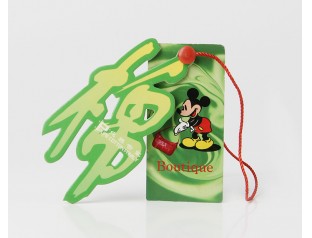 服裝吊牌定制采用了銅版紙,四色印刷,過光膠。此款服裝吊牌是用于童裝的銷售,吊牌設計選用了米老鼠是卡通圖案吊牌定制還用銅版紙設計出一個“棉”的字體,更突顯其服裝的材質。